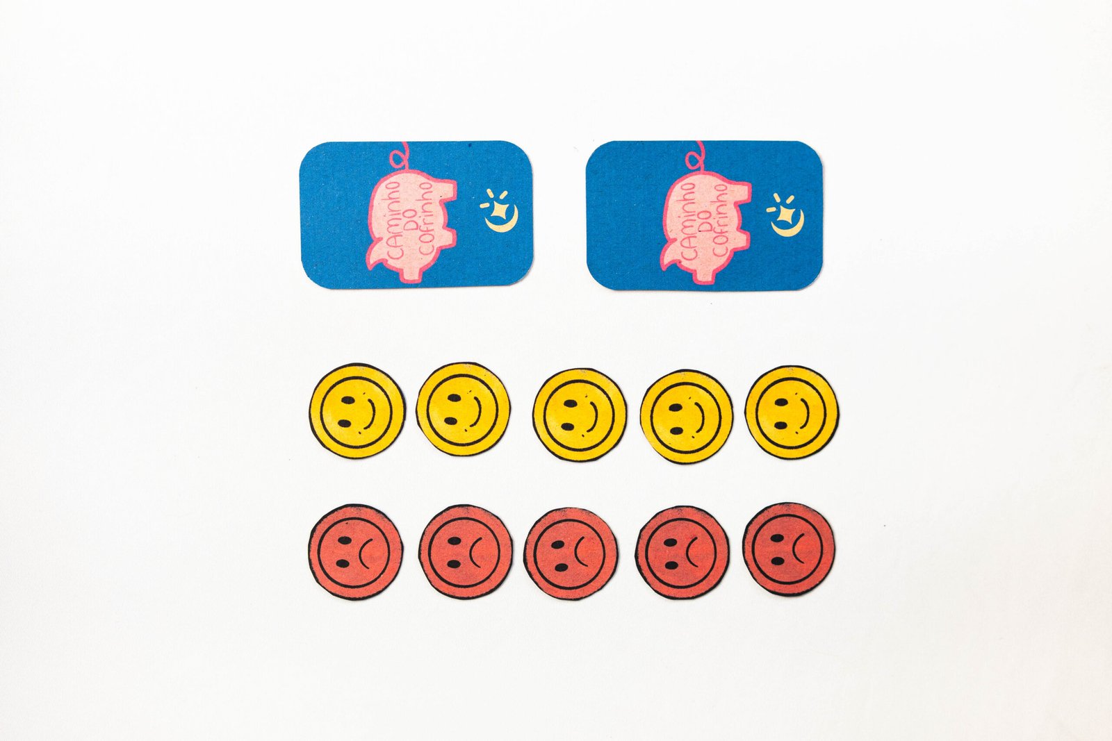 Caminho do Cofrinho é um jogo de cartas e moedinhas criado para ensinar noções de educação financeira de maneira lúdica e acessível. Não é preciso saber ler para jogar, basta puxar a carta e seguir a instrução. As moedinhas felizes e tristes traduzem em sentimentos as escolhas feitas ao longo da partida e criam um espaço seguro e divertido para abrir conversas sobre dinheiro, consumo e consciência financeira em casa ou na escola.