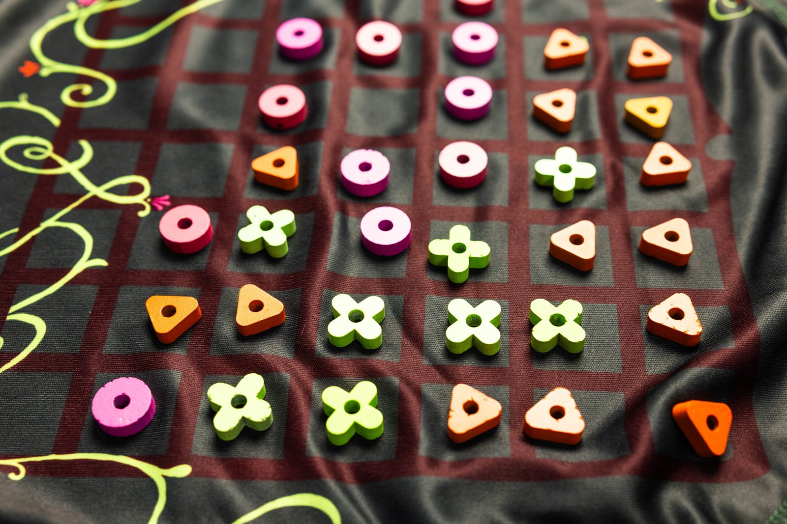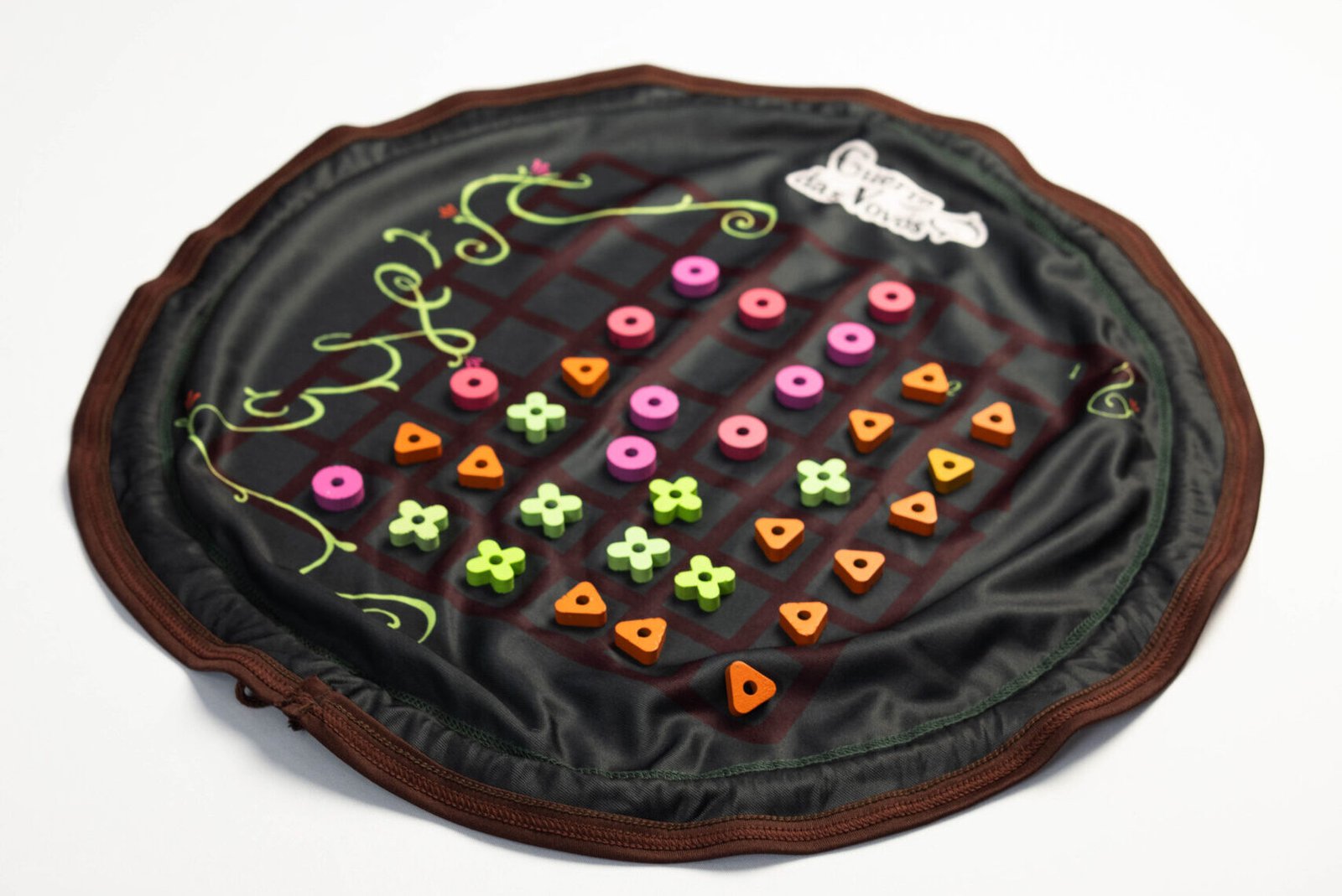 Guerra das Vovós é um jogo estratégico e bem-humorado onde vovós transformam um jardim comunitário em campo de batalha. Cada uma age à sua maneira, seja protegendo suas flores, trocando as das vizinhas ou simplesmente arrancando tudo para deixar o espaço vazio. A disputa acontece em um tabuleiro de tecido prático e encantador que ao fim da partida se dobra e vira uma bolsinha, guardando o jogo e reforçando o charme artesanal da experiência.
