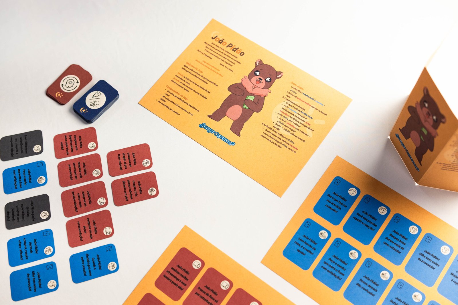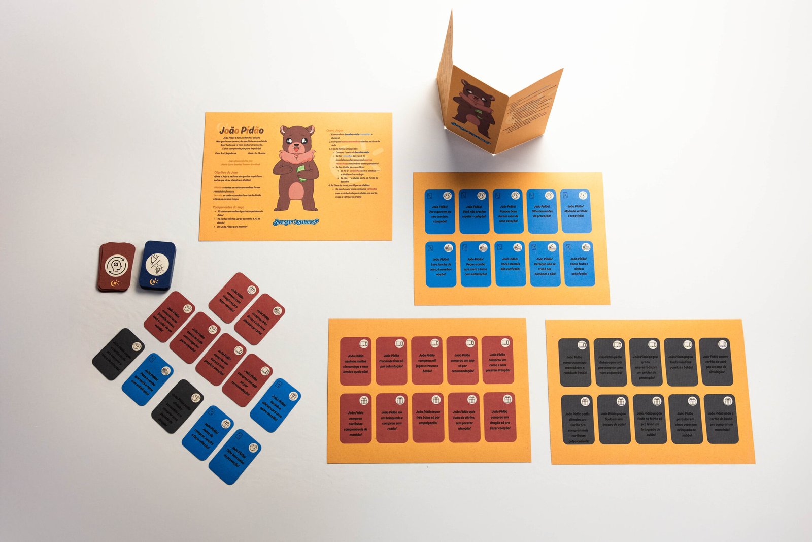João Pidão é um jogo de cartas leve e poético onde dívidas e conselhos surgem em forma de rima. O protagonista é o Ursinho Gastão chamado João Pidão que aparece para atrapalhar os jogadores e deixar tudo de pernas para o ar. Entre humor e estratégia, o jogo mostra que gastar sem pensar traz problemas, mas sempre existe a chance de aprender e virar o jogo com escolhas mais conscientes.